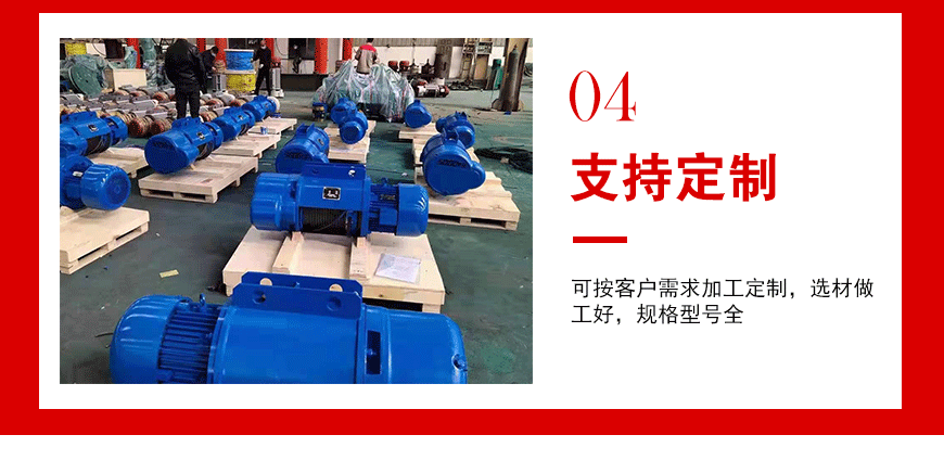 產品介紹:電動葫蘆是吊運貨物、搬運物料的常見設備。可懸掛在工字鋼等軌道上單獨使用,也可作為起重機的重要組成部分一起使用。 電動葫蘆具有質量輕、體積小、結構緊湊、運行平穩、操作...