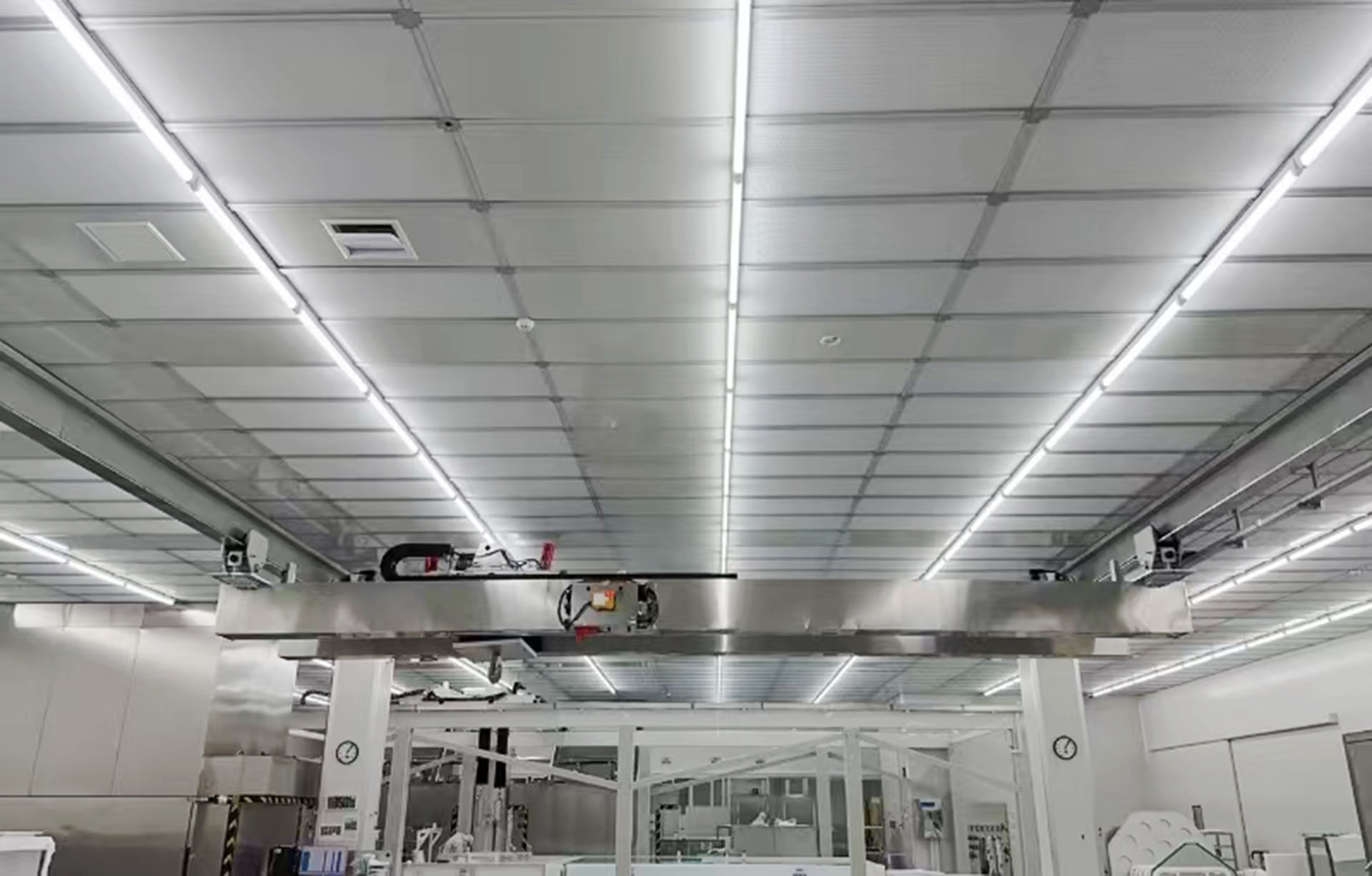 傳統起重機因金屬摩擦粉塵、潤滑油揮發等問題,難以滿足需求。而無塵室懸掛起重機通過針對性設計,徹底解決了這些痛點。
